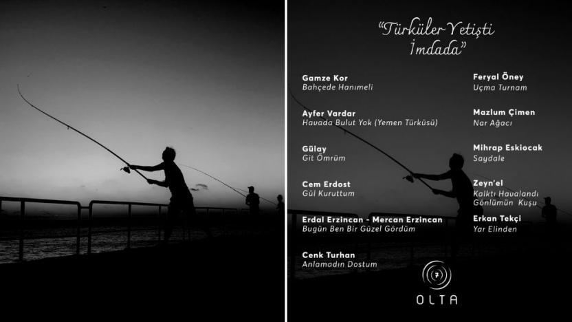 Tüm gelirleri pandemi sürecinde işsiz kalan müzisyenlere, müzik ve sahne emekçilerine dağıtılmak üzere oluşturulan Olta Dayanışma'nın 7. albümü 'Türküler Yetişti İmdada' çıktı. “Umut denizine atılmış bir olta” mottosundan yola çıkan müzisyenlerin oluşturduğu albüm ile beraber bugüne kadar toplam 81 şarkı yayınlanmış oldu. Şarkıların oluşmasında yüzü aşkın müzisyen emek harcadı. Albümde türkülerini dinlediğimiz isimler Gamze Kor, Ayfer Vardar, Gülay Sezer, Cem Dost İleri, Erdal Erzincan, Mercan Erzincan, Cenk Turhan, Feryal Öney, Mazlum Çimen, Mihrap Eskiocak, Zeyn'el, Erkan Tekçi Olta'nın 7. albümü ilk türkü albümü olurken bunun devamı da ilerleyen tarihlerde gelecek.   Olta’ya şarkı göndermek ve ihtiyaç sahibi müzisyenlere destek olmak…